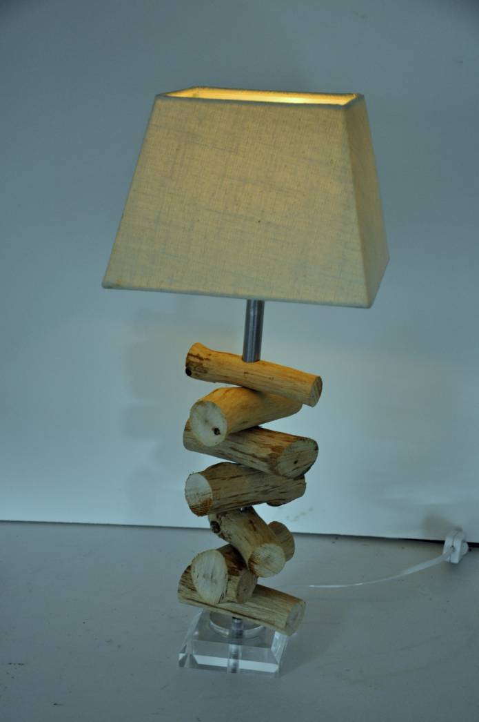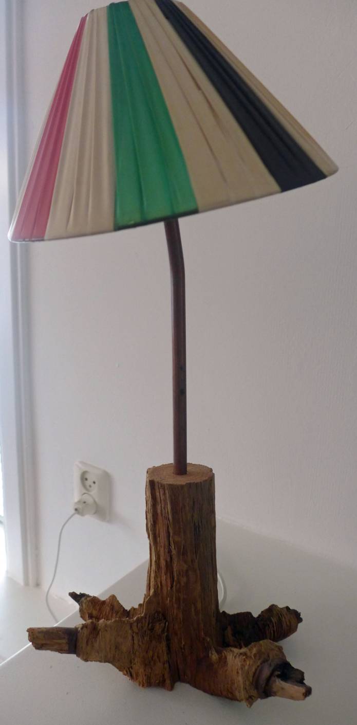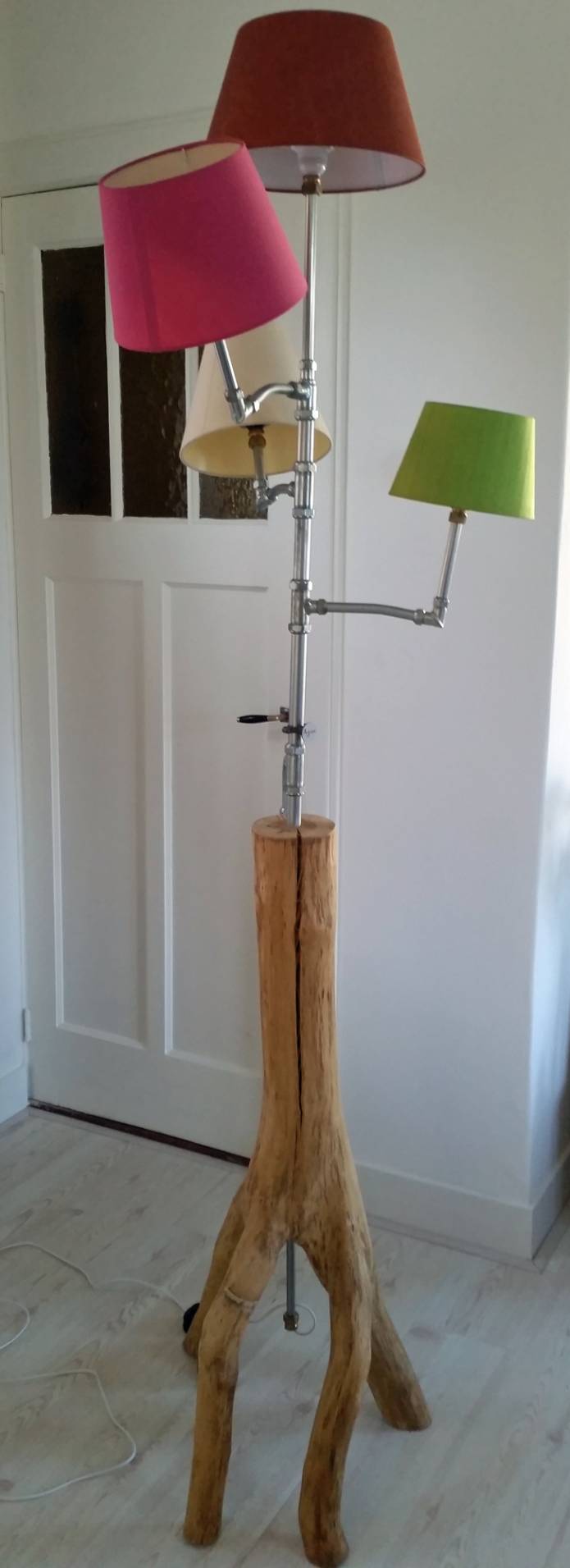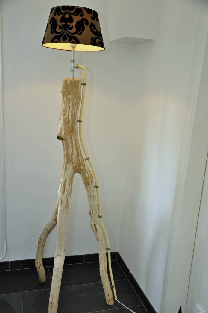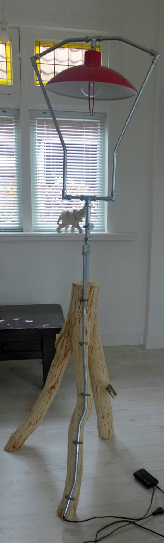 Grote staande lamp Giraffe, van hout, metaal en textiel.